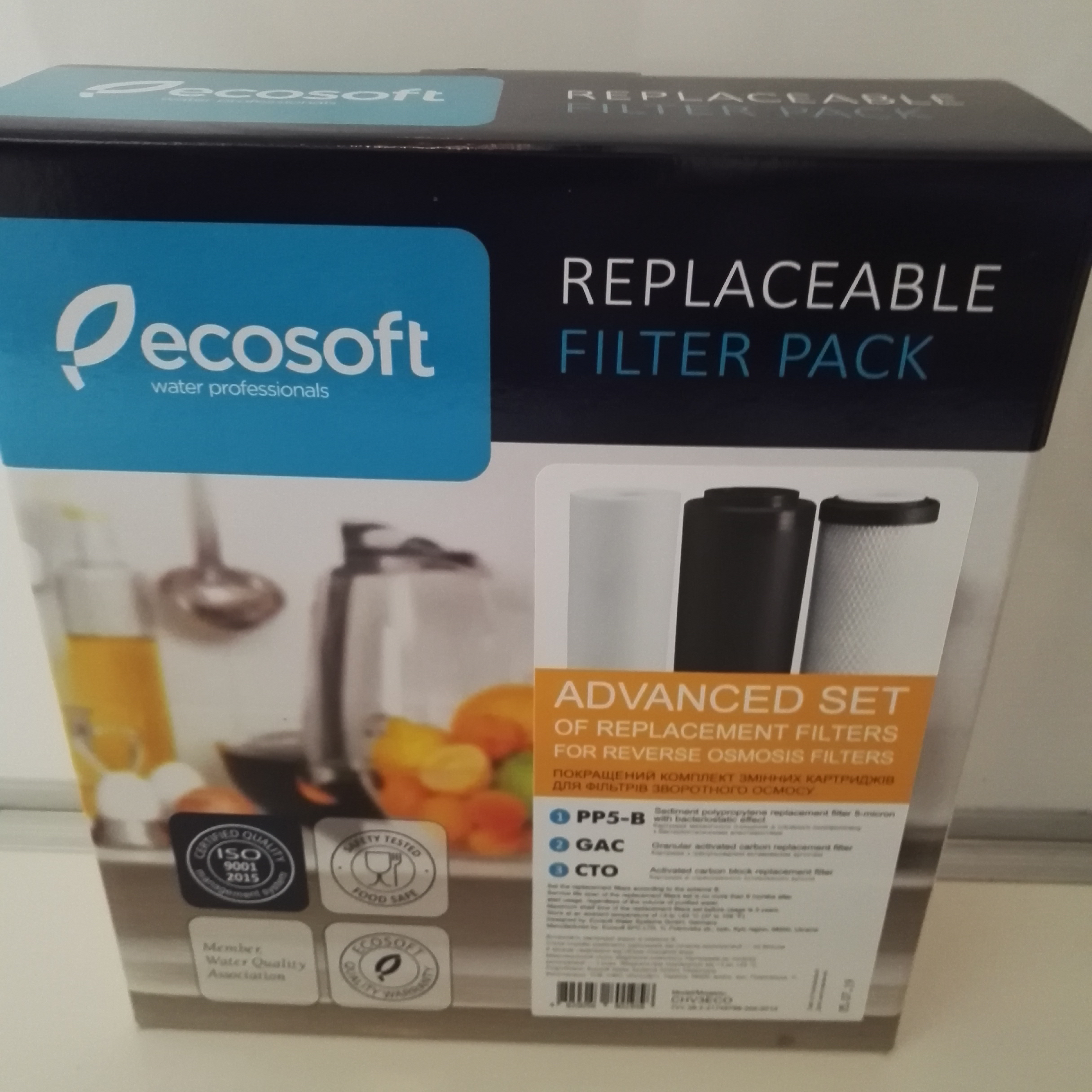 Ecosoft 1-2-3 asendusfiltrite komplekt pöördosmoosifiltrite jaoks on ette nähtud ainult külma kraanivee töötlemiseks.